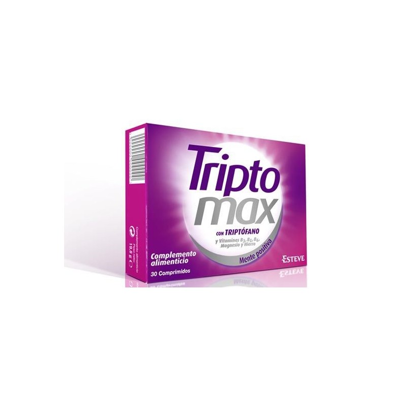 Triptomaxes un complemento alimenticio a base de triptófano con Vitaminas B3, B5, B6, hierro y magnesio.