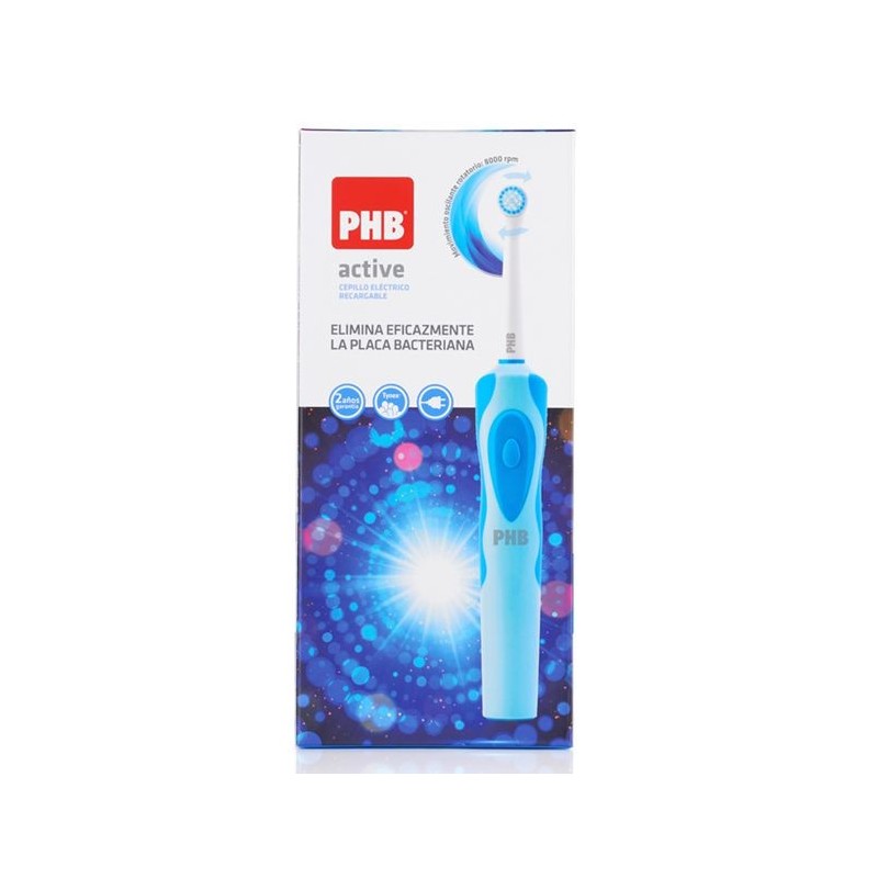 El cepillo eléctrico PHB Active Original gracias a las 8.000rpm de su cabezal rotacional proporciona mayor eficacia en la eliminación de la placa bacteriana, especialmente en los espacios interdentales y superficie interior de los dientes.