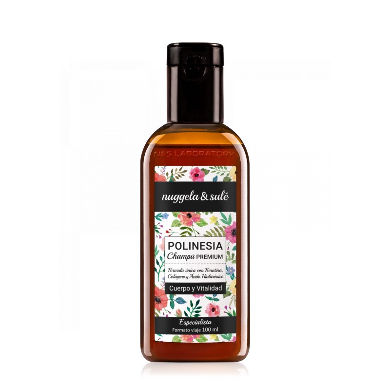 Nuggela & Sulé Champú Polinesia - Keratina ayuda a fortalecer el cabello desde la fibra capilar hasta el folículo piloso, consiguiendo así mejorar la vitalidad tanto por fuera como por dentro. Especialmente indicado para aquellas personas que se han sometido a un tratamineto de Keratina, Botox Capilar, Hialurónico, etc.