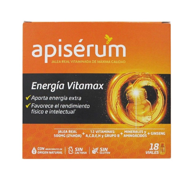 Jalea real vitaminada de maxima calidad (18 viales). Aporta energía extra y favorece el rendimiento físico e intelectual. Combinación única de vitaminas, minerales, aminoácidos, jalea real y ginseng, de acción energizante. Para adultos y niños mayores de 14 años. Con ingredientes de origen natural. Sin lactosa y sin azúcares añadidos. Está indicado:
