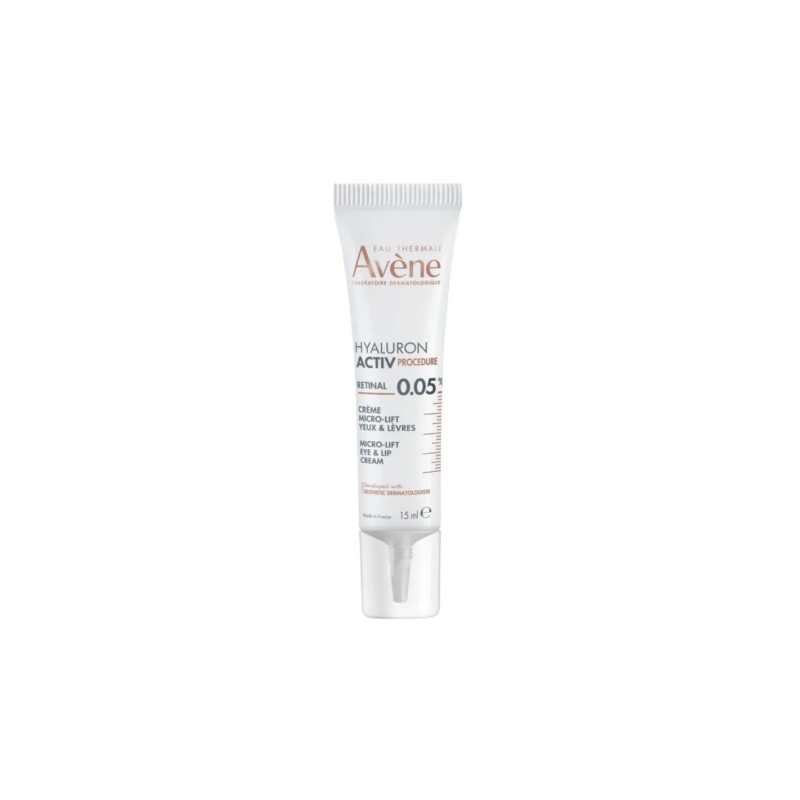 Avene hyaluron activ procedure retinal 0,05 es una crema antiedad especializada para el contorno de ojos y labios, reafirma los contornos, rellena arrugas finas y activa la luminosidad, ideal para adultos con pieles maduras o sensibles que buscan un tratamiento suave y efectivo, especialmente en zonas delicadas propensas a signos de envejecimiento. Esta crema renueva la epidermis, hidrata profundamente, rellena inmediatamente, calma y uniformiza el tono, ofreciendo resultados clínicamente probados en firmeza y luminosidad desde la primera semana. Su textura ligera y no grasa se absorbe rápidamente, siendo perfecta para rutinas diarias de cuidado facial, integrándose fácilmente en tratamientos antiedad para ojos y labios para una mirada y sonrisa más rejuvenecidas y luminosas.