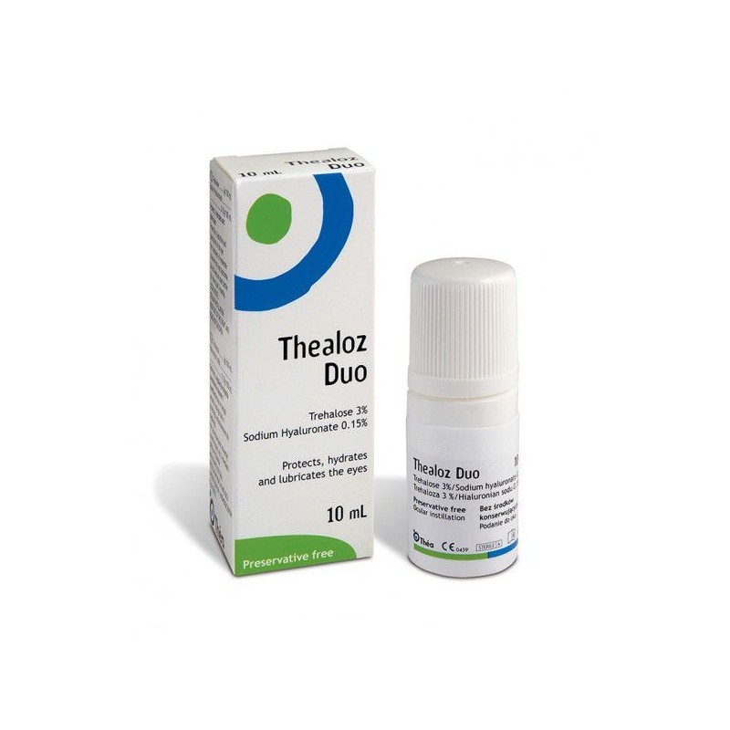 thealoz duoes una solución oftálmica acuosa estéril, sin conservantes, hipotónica y con ph neutro. Sus ingredientes principales son la trehalosa, un disacárido presente en numerosas plantas y animales, y el hialuronato de sodio, un polisacárido presente de manera natural en el ojo.