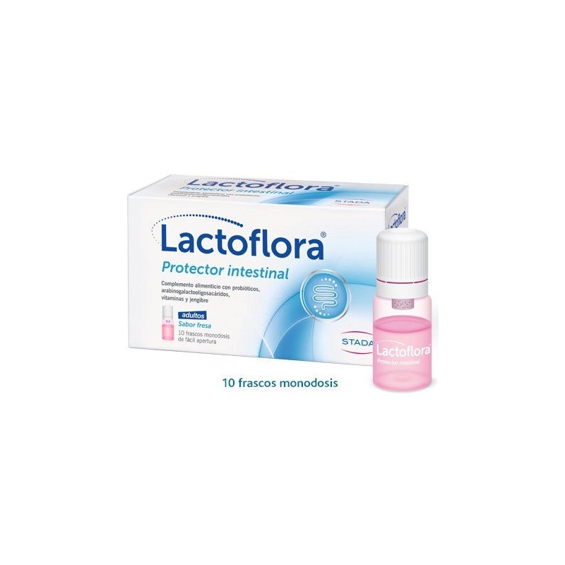 Complemento alimenticio con lactobacilos, bifidobacterias, arabinogalactooligosacáridos, vitaminas y aloe vera.