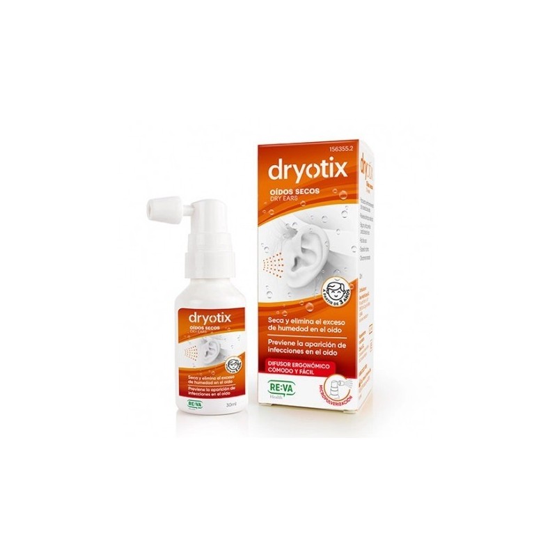 Dryotix es un spray a base de alcohol isopropílico, glicerina y aceite de rosas que ayuda a secar la humedad del oído de modo que se revienen las infecciones a la vez que lo mantiene hidratado gracias a la formación de una película protectora.