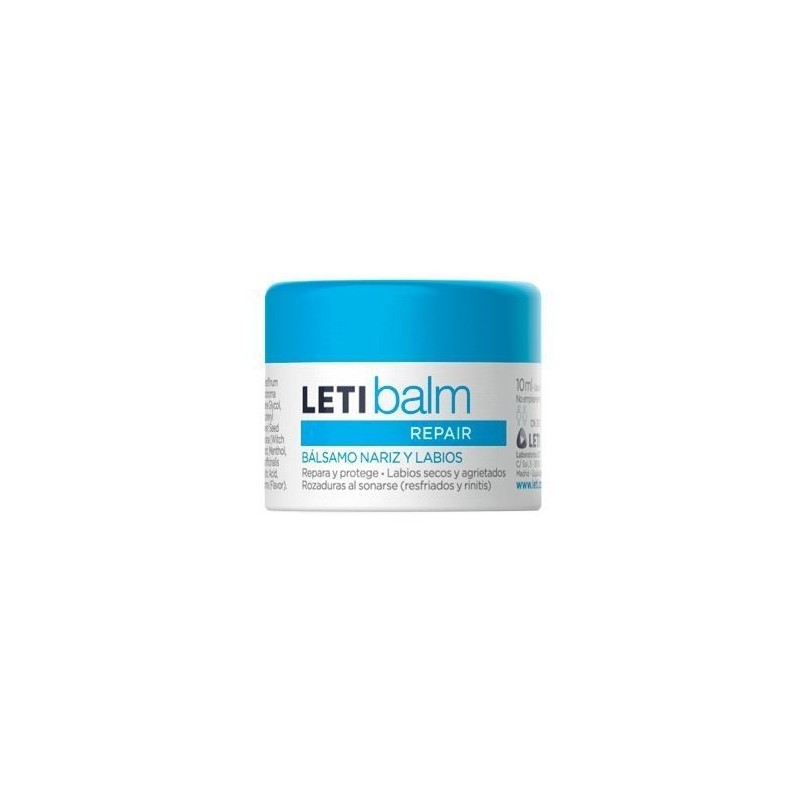 Leti Balm Bálsamo Reparador está especialmente indicado para el cuidado de las zonas alteradas o irritadas de nariz y labios, casos que se dan sobre todo en resfriados o procesos catarrales.